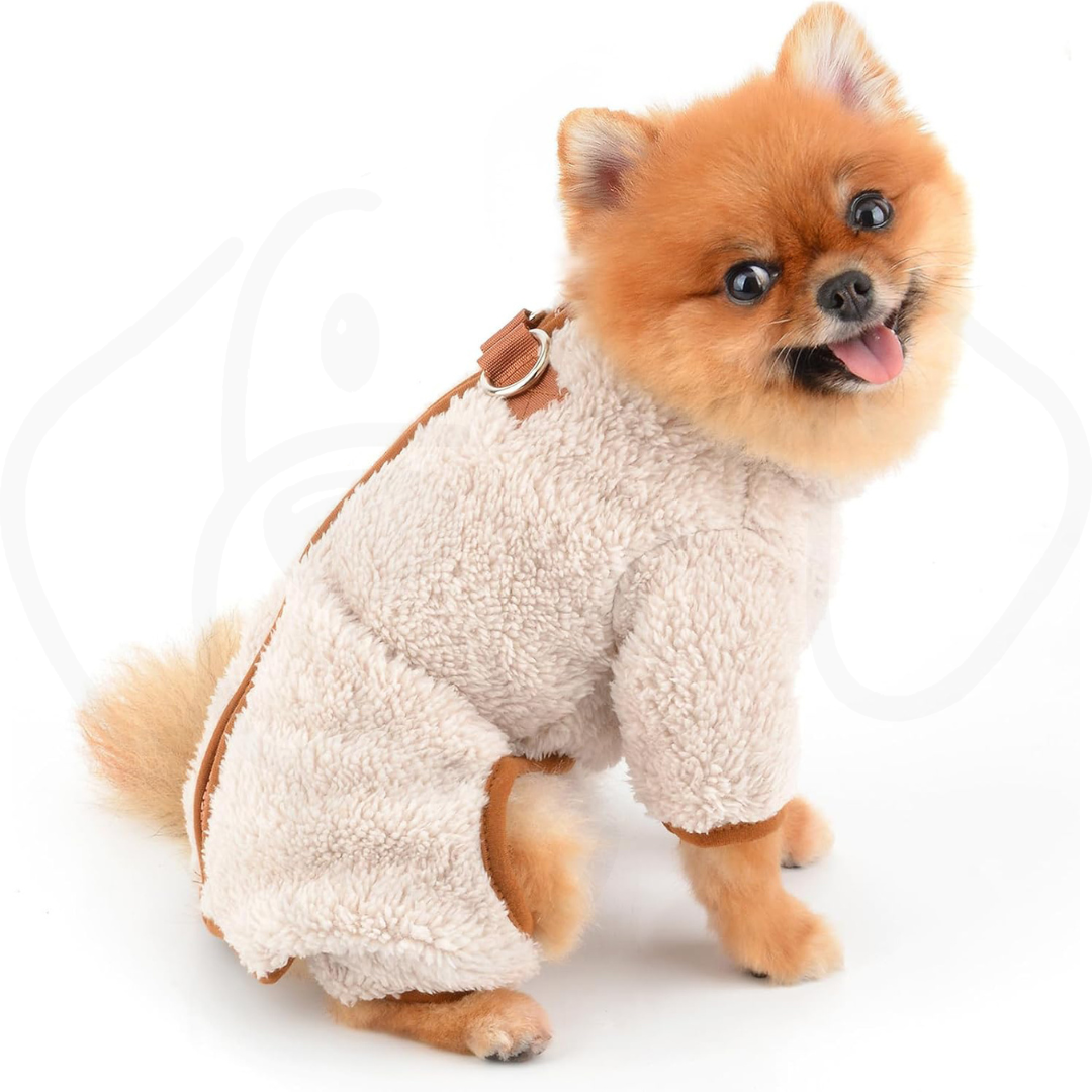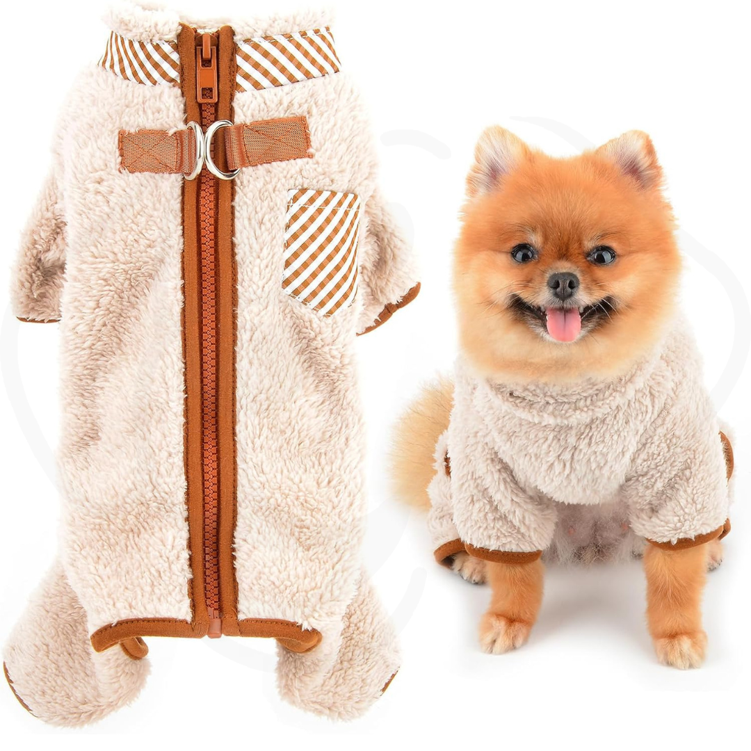 Plush Fleece Dog Coat For Small Dog With Double D-Ring Zipper On Back Pet Jumpsuit Puppy Pajamas Winter Fall Thermal Clothes
